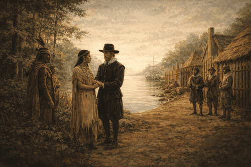 On April 5, 1614, a ceremony in the small English settlement of Jamestown, Virginia, joined Pocahontas — daughter of Wahunsenacawh, the paramount chief of the Powhatan Confederacy — and John Rolfe, an English tobacco planter, in marriage. She was roughly seventeen or eighteen years old; he was twenty-eight. The union followed a complicated and often painful series of events: Pocahontas had been taken captive by English colonists in 1613 as a bargaining tool in ongoing negotiations with her father, and during her captivity she had converted to Christianity, taken the name Rebecca, and met Rolfe. Whatever the precise contours of their relationship, the marriage produced a genuine, if fragile, peace — what historians call the Peace of Pocahontas — that held for several years and allowed the Jamestown colony to stabilize during a critical period of its survival.